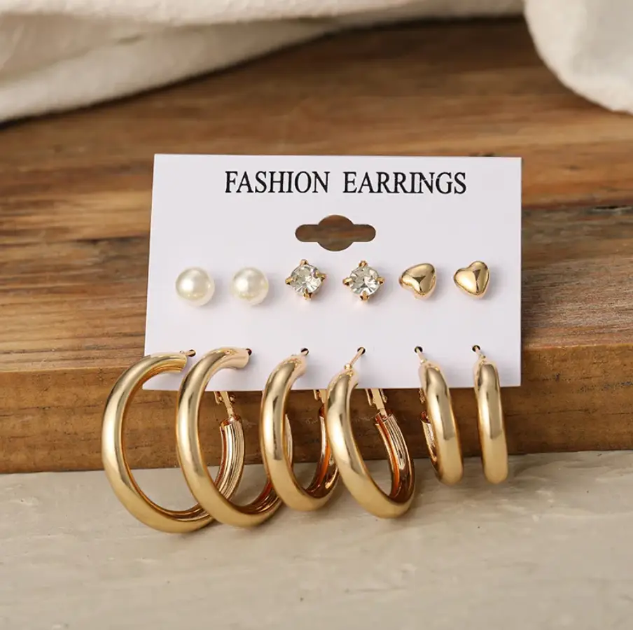 Пусеты 12 пар One year, летний день, цветные в золоте