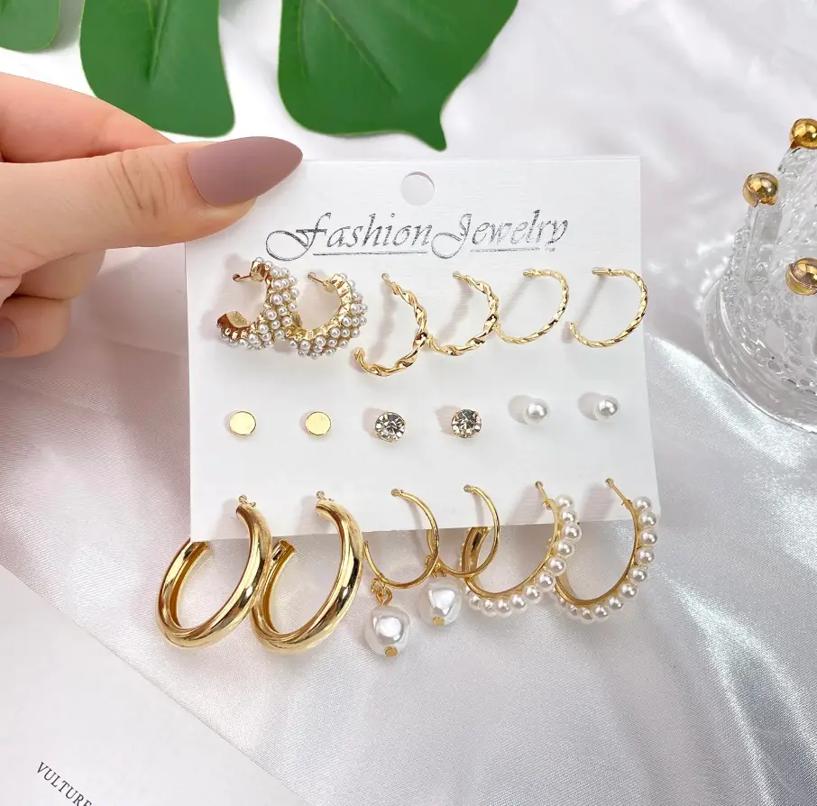 Пусеты 12 пар One year, летний день, цветные в золоте