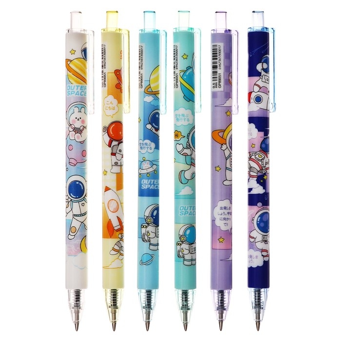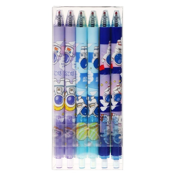Набор шариковых ручек 12 штук, 0,5мм, автоматическая, корпус с рисунком, чернила черные, МИКС