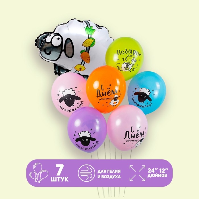 Набор шаров «Овечка. С днём рождения», латекс, фольга, 7 шт.