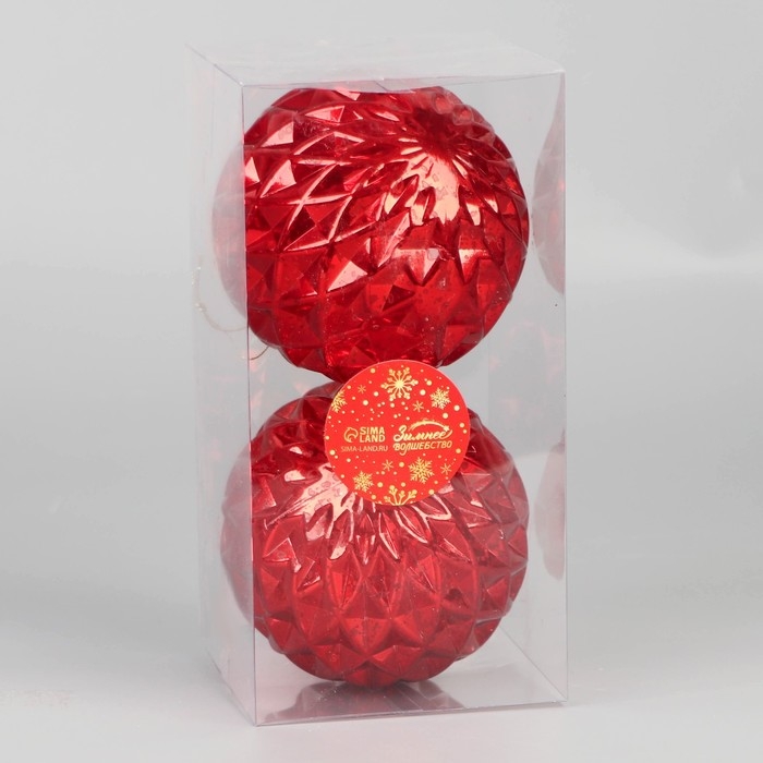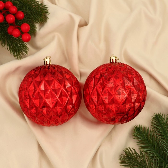 Набор шаров пластик d-10 см, 2 шт "Винтаж" грани, красный