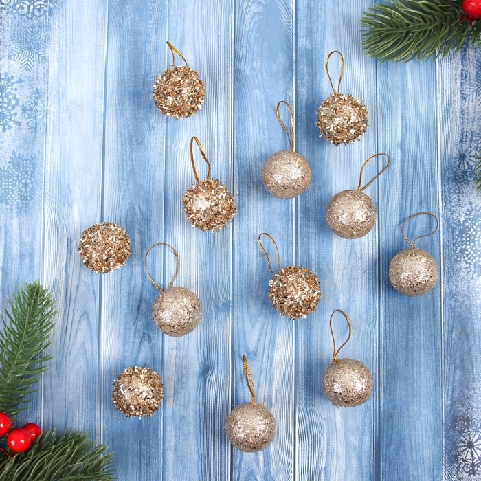 Набор шаров пластик d-3 см, 12 шт "Золотая посыпка"
