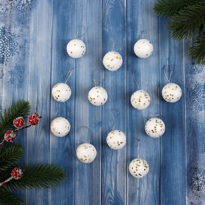 Набор шаров пластик d-3 см, 12 шт "Золотые вкрапления"