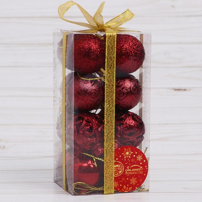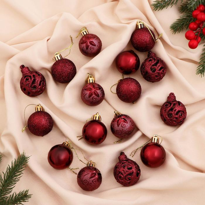 Набор шаров пластик d- 4 см, 16 шт "Торжество узоры" красный