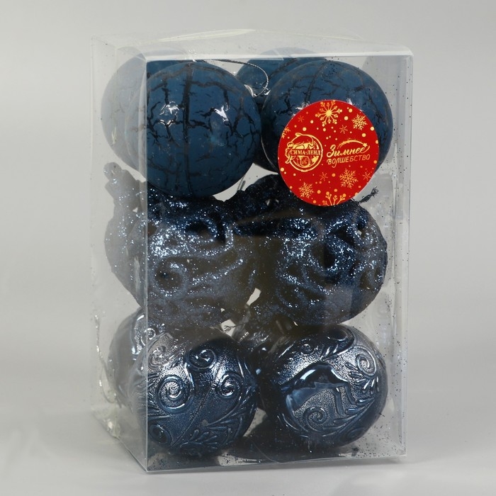 Набор шаров пластик d-6 см, 12 шт "Мелодия" орнамент, синий