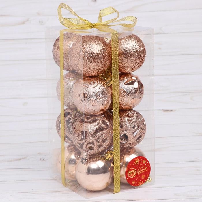 Набор шаров пластик d-6 см, 16 шт "Торжество" золото