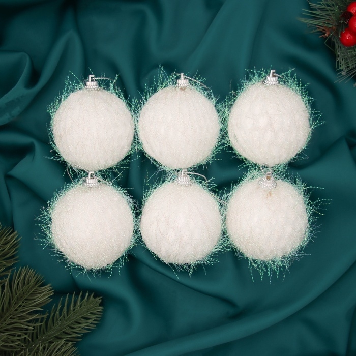 Набор шаров пластик d-6 см, 6 шт "Бенеце" белый