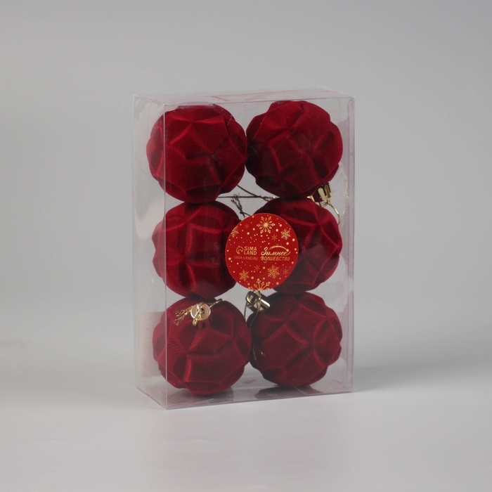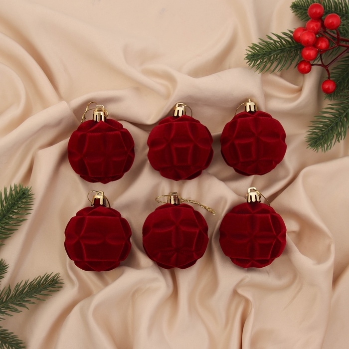Набор шаров пластик d-6 см, 6 шт "Бьорн" геометрия, красный