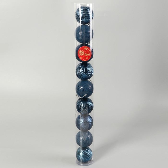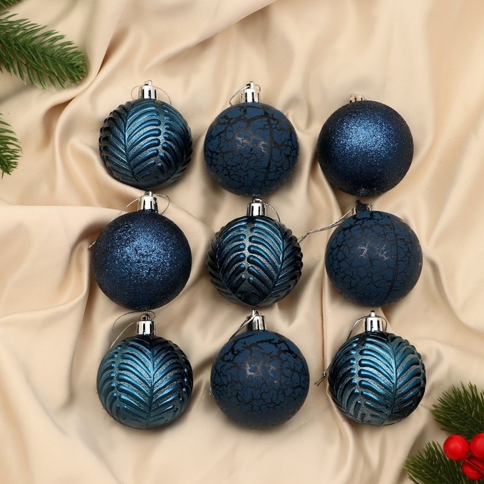 Набор шаров пластик d-6 см, 9 шт "Мелодия" веточки блеск, синий