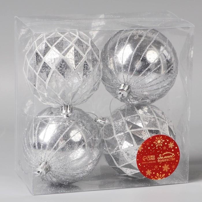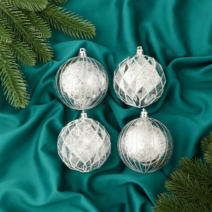 Набор шаров пластик d-8 см, 4 шт "Калейдоскоп" серебро