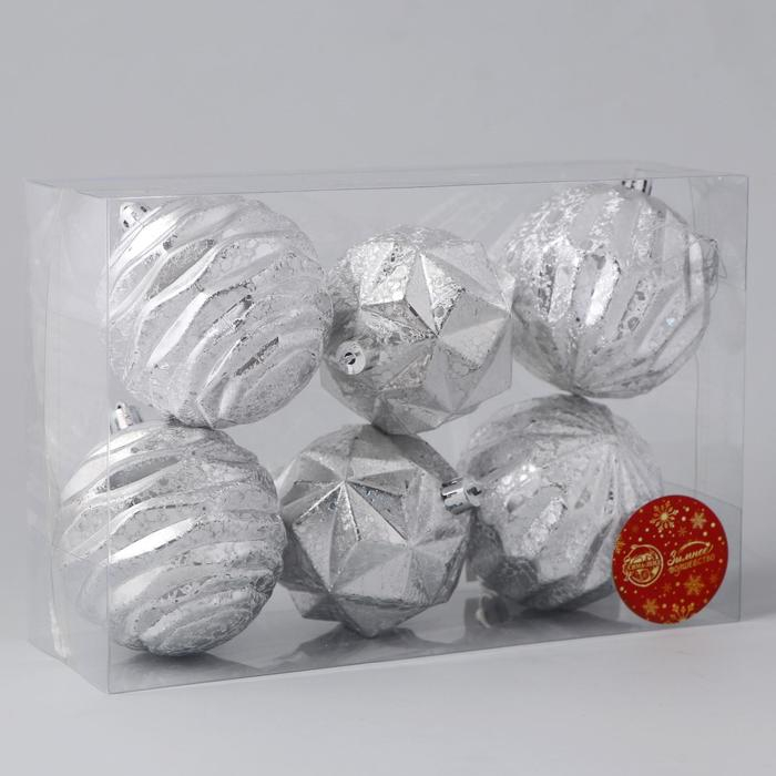 Набор шаров пластик d-8 см, 6 шт "Грани ассорти" серебро