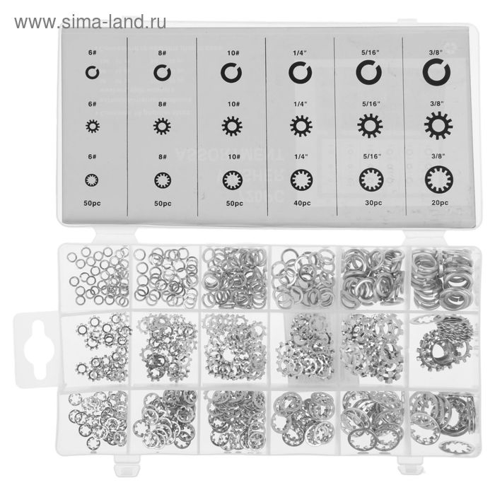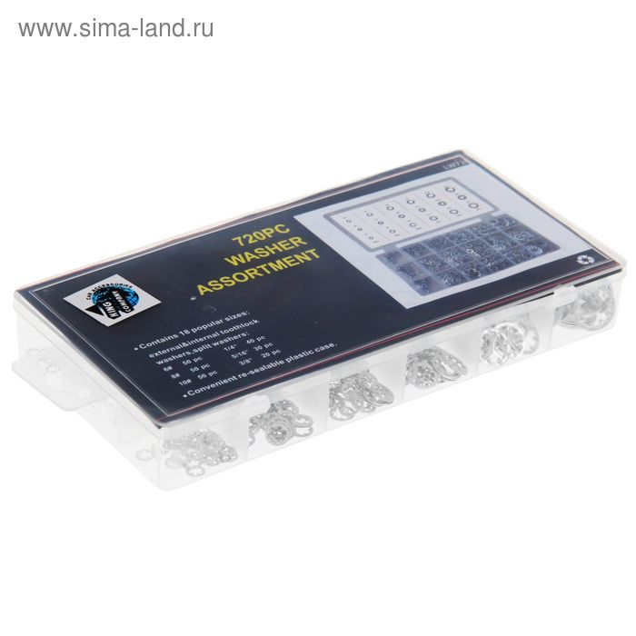 Набор шайб, 18 видов: гровер, зубчатые, стопорные, многолапчатые, 720 шт