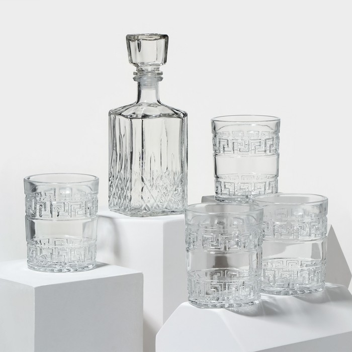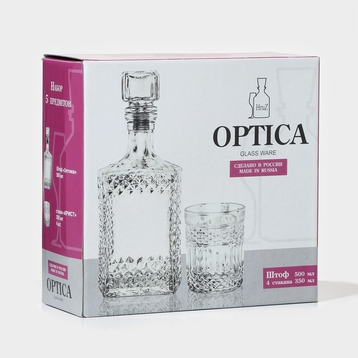 Набор штоф «Оптика», 500 мл, стакан «Крист», 350 мл, 4 шт, МИКС