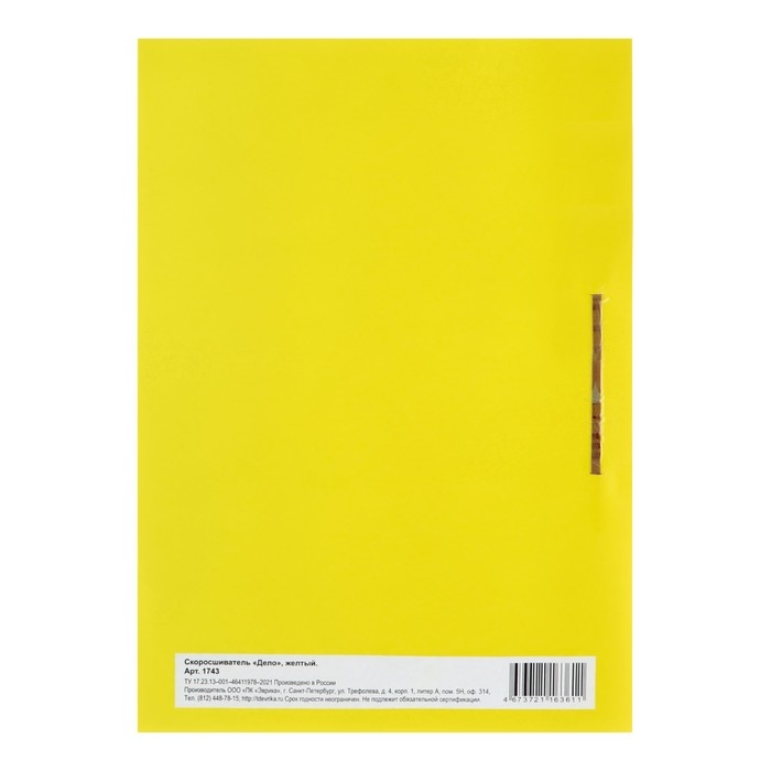 Скоросшиватель Calligrata серии «Дело» формата А4 предназначен для хранения бумаг. Изделие размером 310 х 220 мм выполнено из мелованного картона жёлтого цвета, плотностью 300 г/м2. Ширина корешка составляет 30 мм. На лицевой стороне располагаются поля для надписей. Механизм скоросшивателя позволяет надёжно зафиксировать бумагу для организации хранения и транспортировки. Товар вмещает до 200 листов. Отпускается одним набором по 5 штук