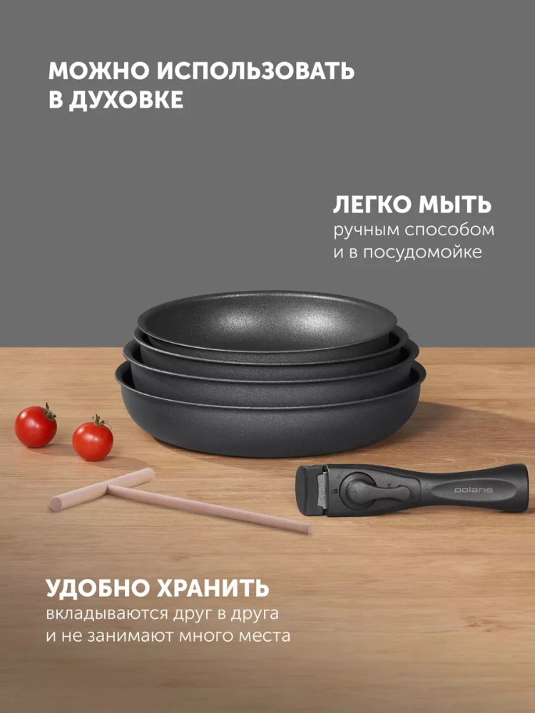 Воспользуйтесь практичным набором посуды Поларис EasyKeep-6D от Polaris и наслаждайтесь приготовлением ваших любимых блюд!