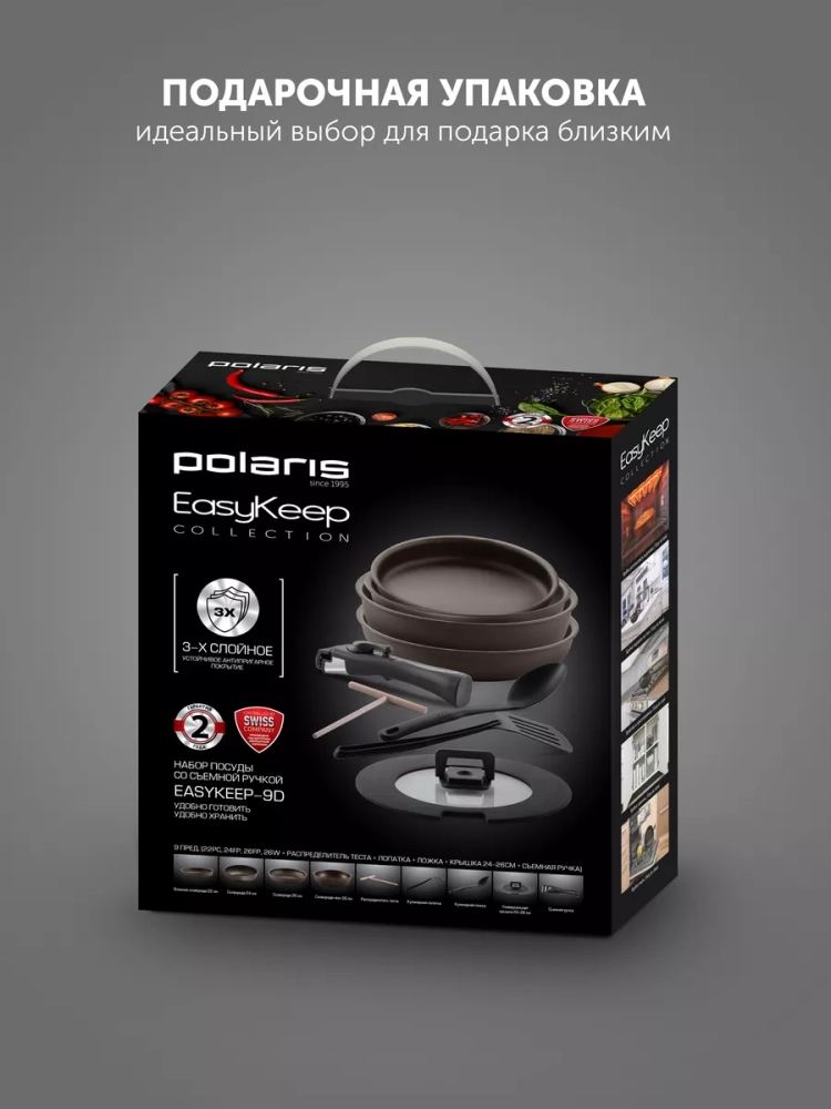 Уникальная коллекция посуды EasyKeep-9D от Polaris станет незаменимым помощником на кухне и порадует своей многофункциональностью. Основное преимущество набора - удобство при приготовлении и компактность при хранении, что несомненно оценит каждая хозяйка!