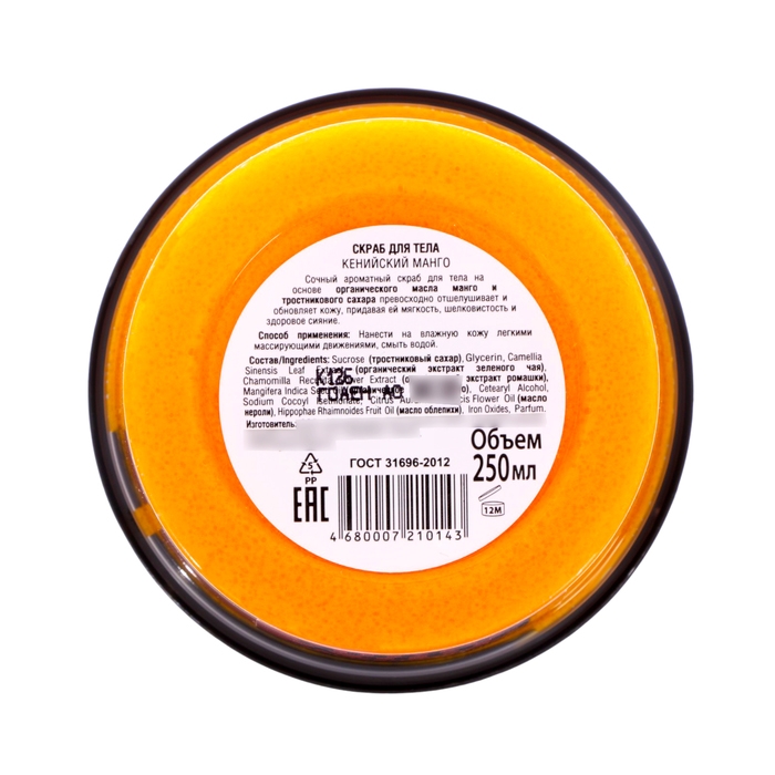 Скраб "Кенийский манго" содержит измельченную кожуру манго, которая обладает мягким отшелушивающим эффектом. Кроме того, экстракт манго питает и увлажняет кожу, делая ее более упругой и эластичной.