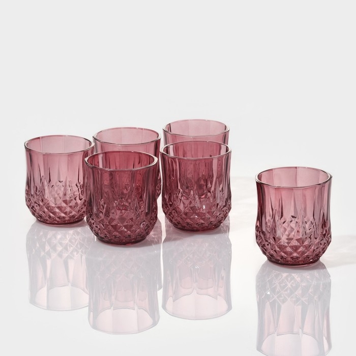 Набор стаканов стеклянных «Стич», 200 мл, 6 шт, цвет розовый