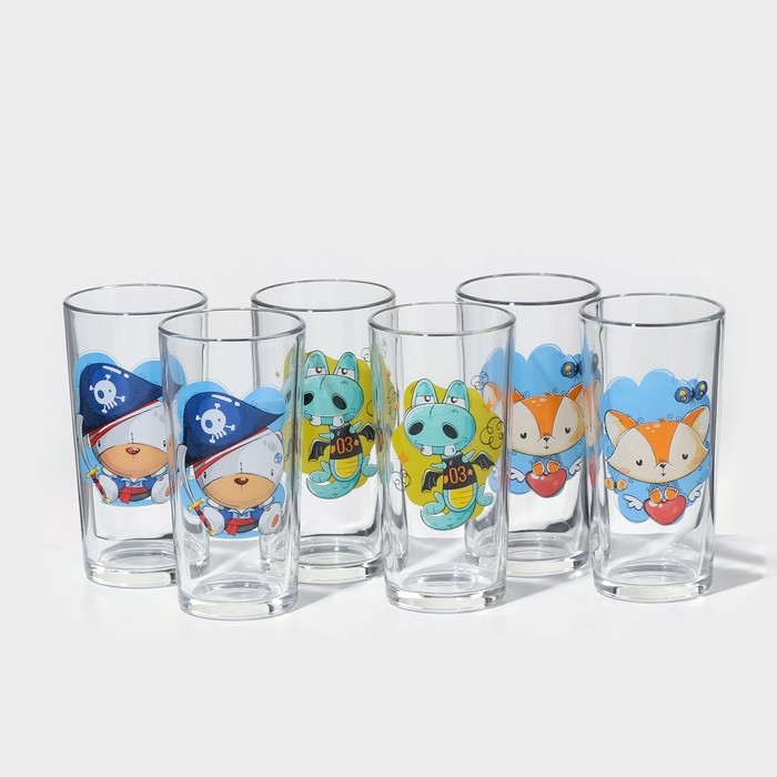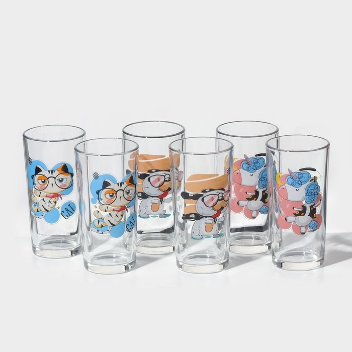 Набор стаканов «Верные друзья», стеклянный, 230 мл, 6 шт, рисунок микс