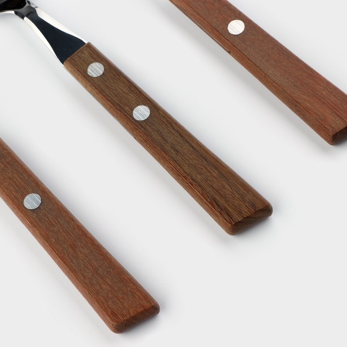 - деревянные ручки столовых приборов являются не только красивыми, но и удобными в использовании, не скользят в руке, не нагреваются.