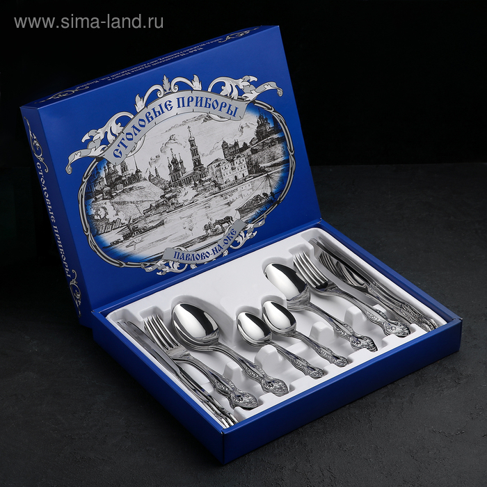 Набор столовых приборов «Славянка», 24 предмета, декоративная коробка, цвет серебряный