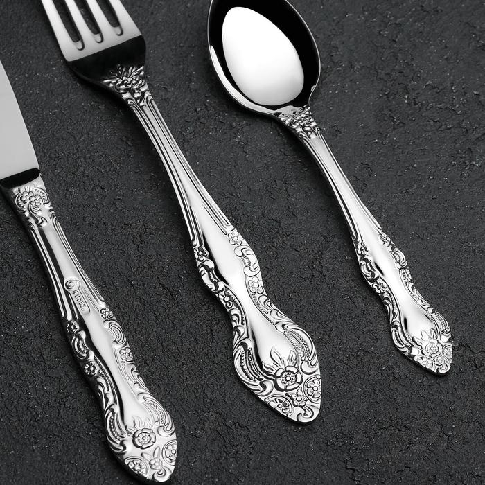 Набор столовых приборов «Тройка», 24 предмета, декоративная коробка, цвет серебряный