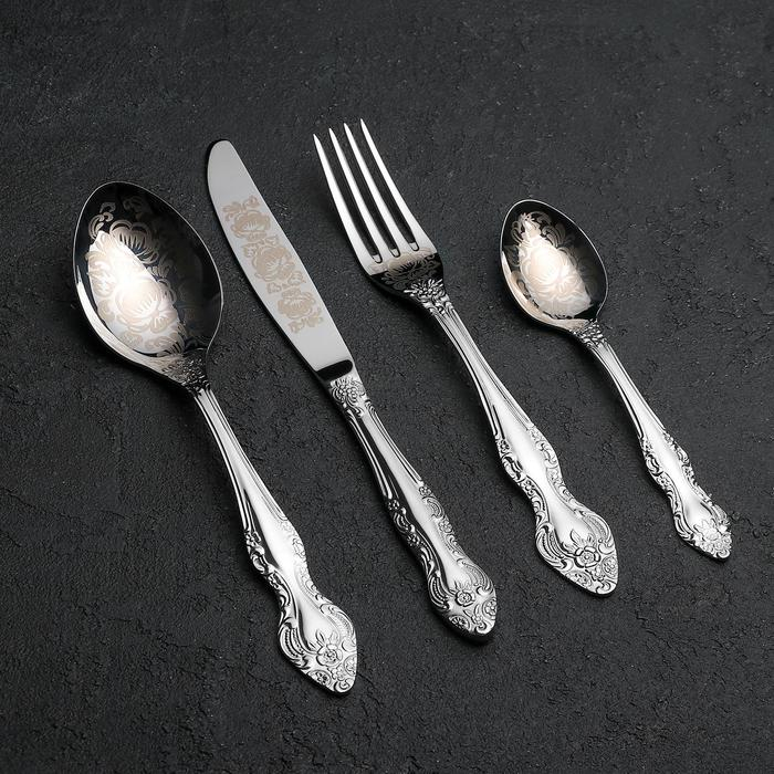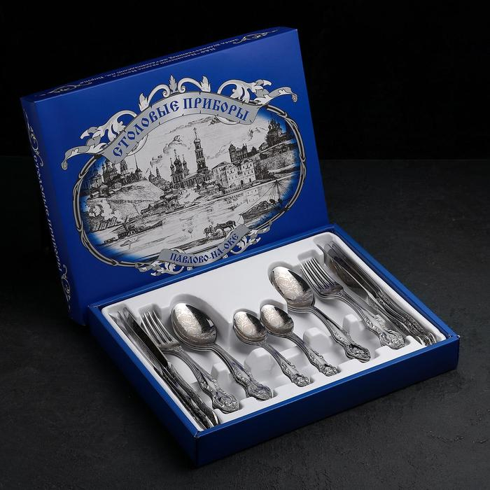 Набор столовых приборов «Тройка», 24 предмета, художественная роспись, декоративная коробка