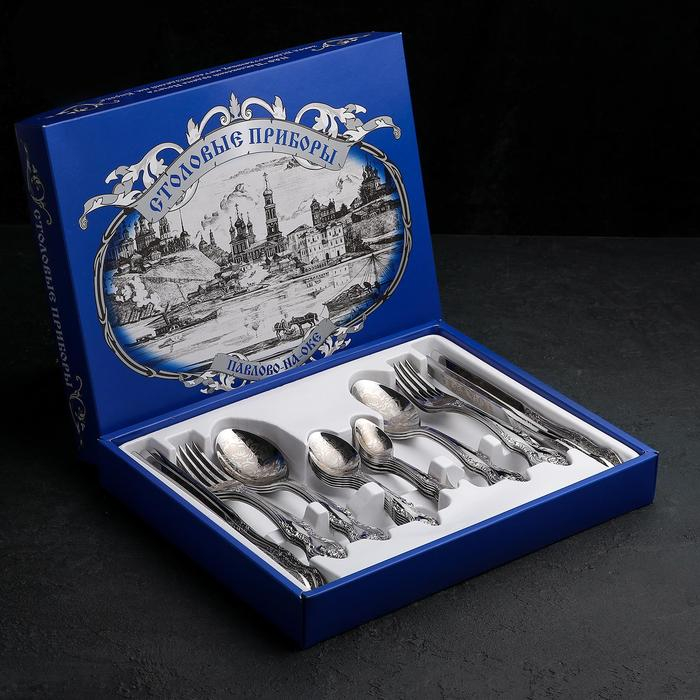 Набор столовых приборов «Тройка», 30 предметов, художественная роспись, декоративная коробка