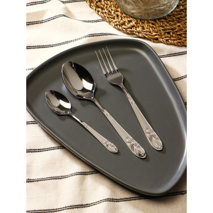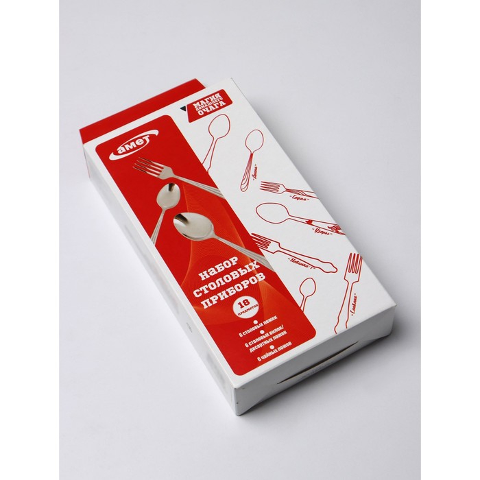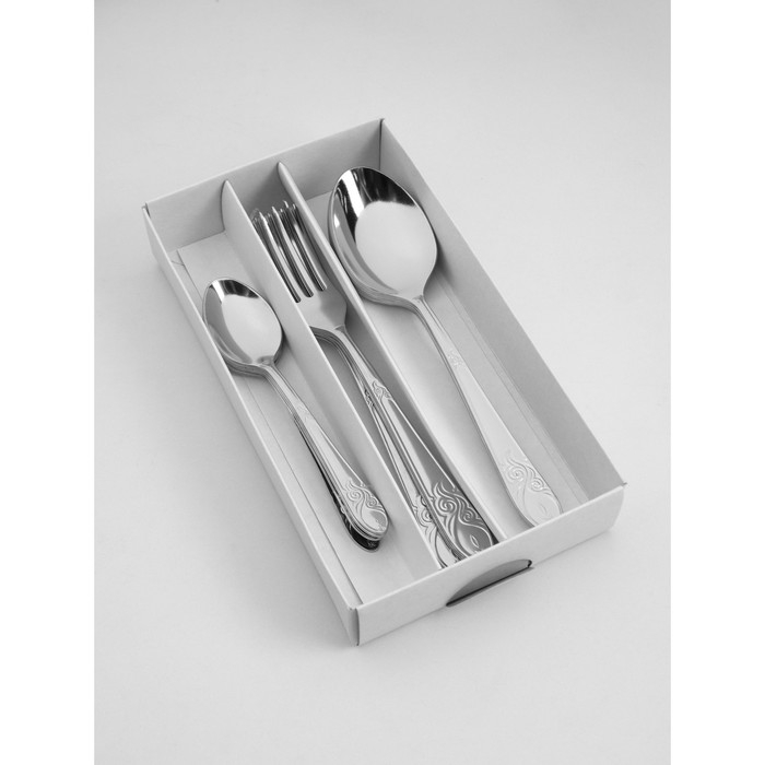 Набор столовых приборов «Узоры», 18 предметов, толщина 1,8 мм, картонная коробка, цвет серебряный