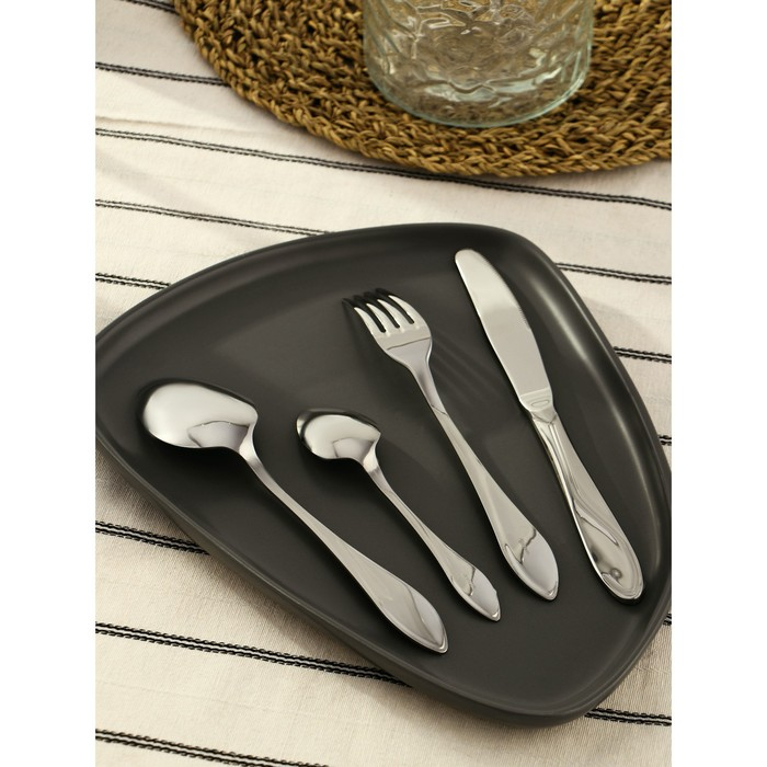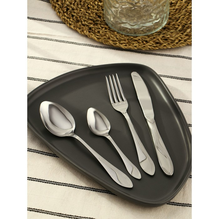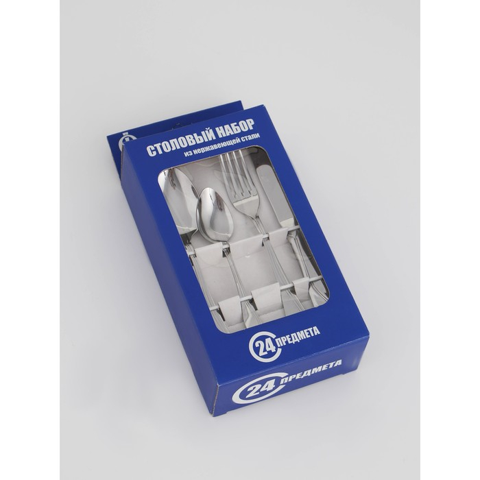 Набор столовых приборов «Волна», 24 предмета, картонная коробка с окном, цвет серебряный