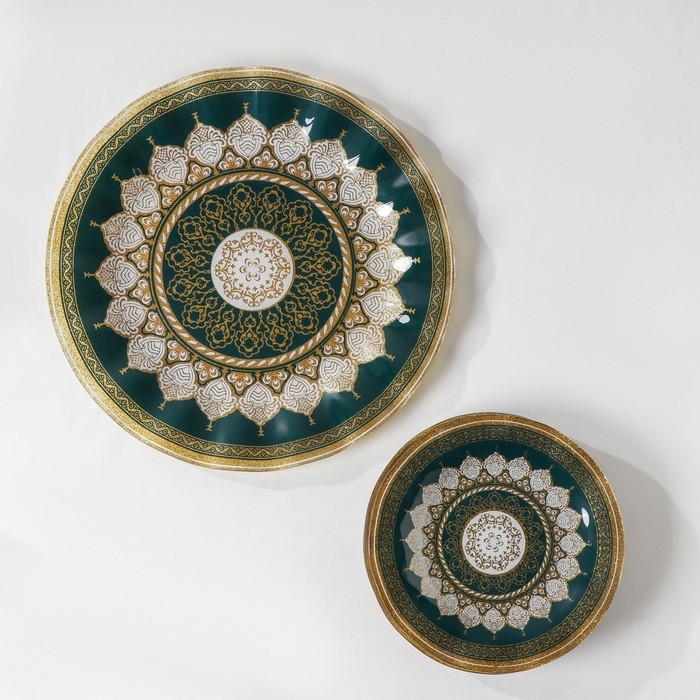 Набор столовый «Мехенди», 7 предметов: d=30 см - 1 шт, d=18 см - 6 шт, цвет зелёный с жёлтым