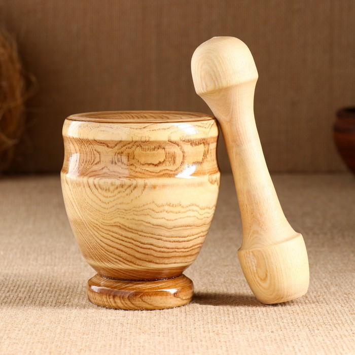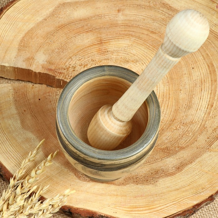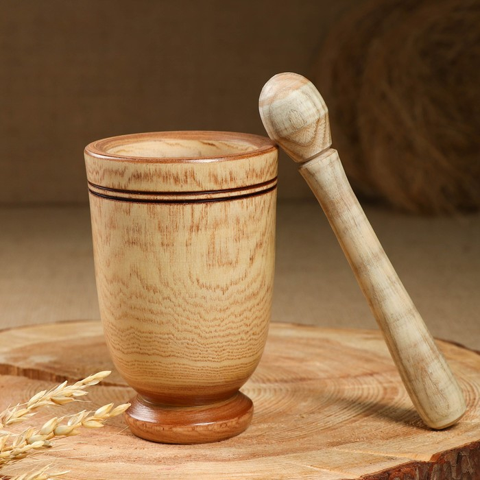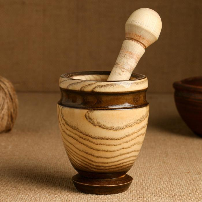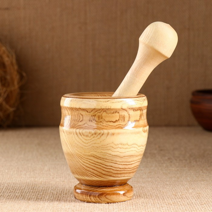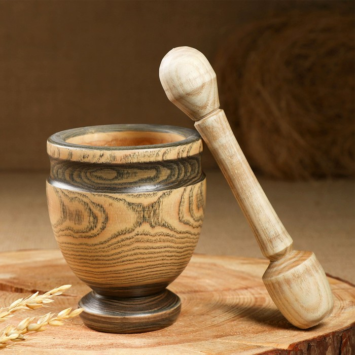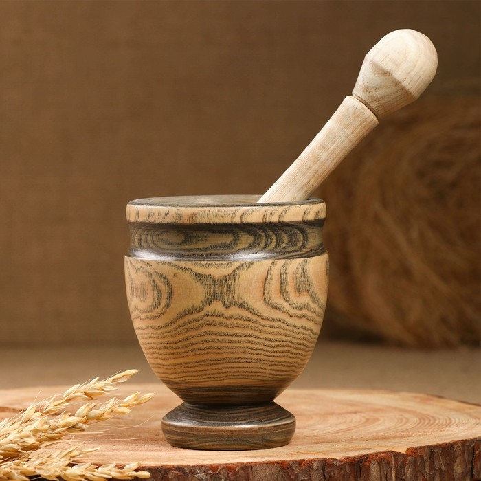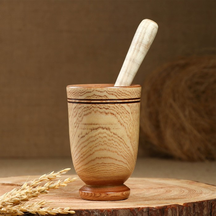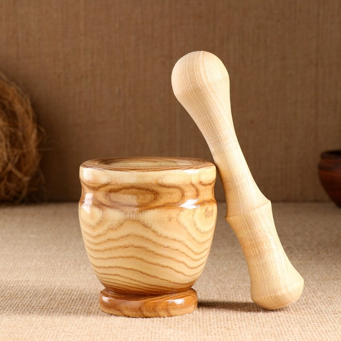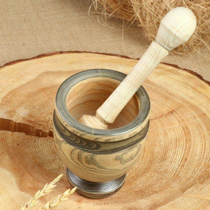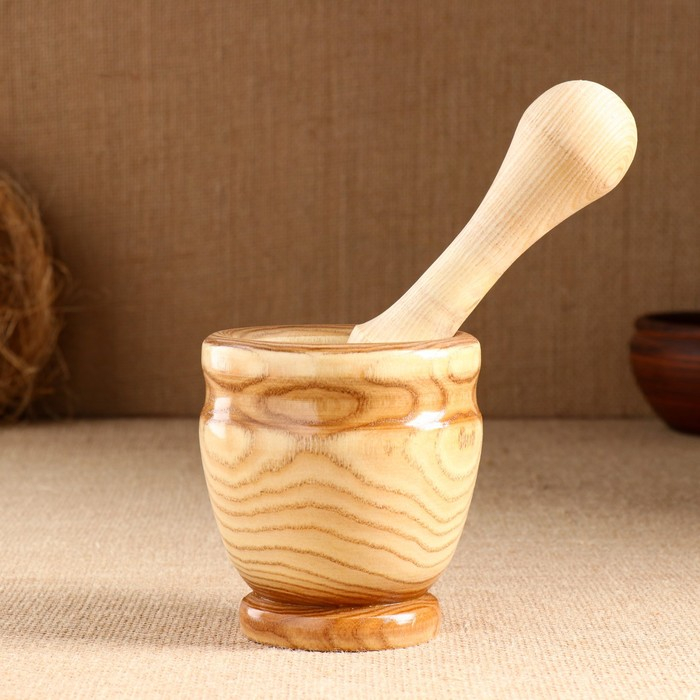 Набор: ступка с пестиком, ясень , 13 см, МИКС