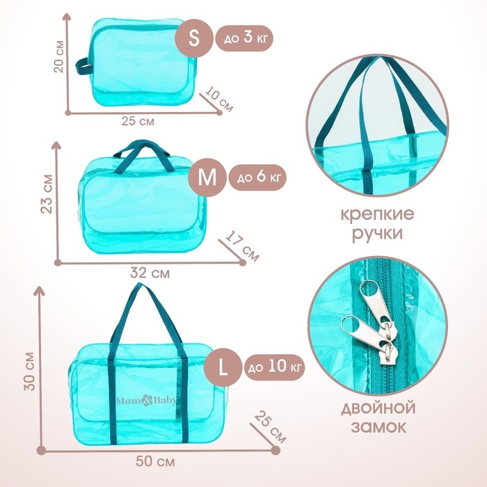 Набор сумок в роддом, 3 шт., цвет прозрачный/бирюзовый, M&B