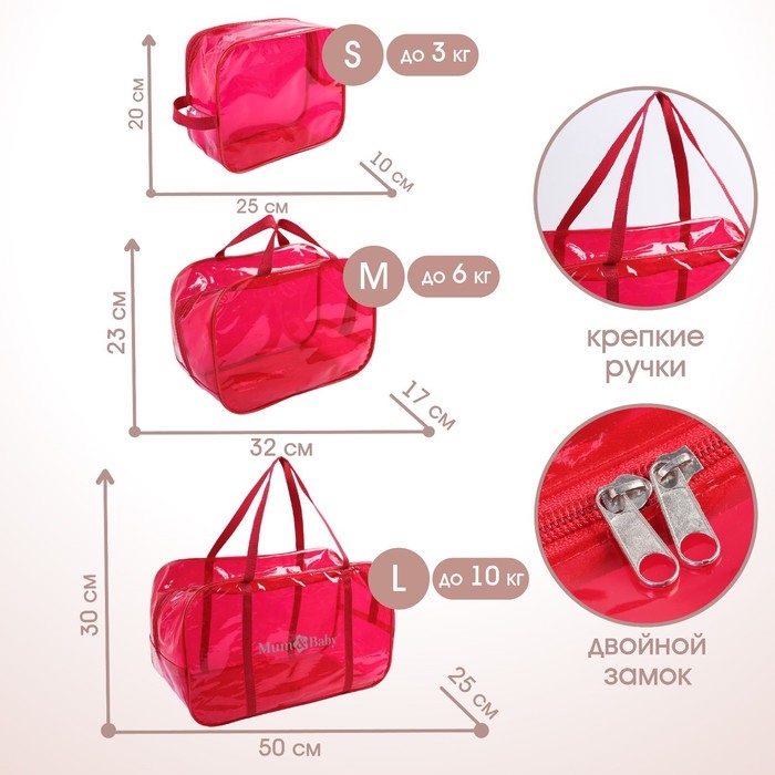 Набор сумок в роддом, 3 шт., цвет прозрачный/красный, M&B