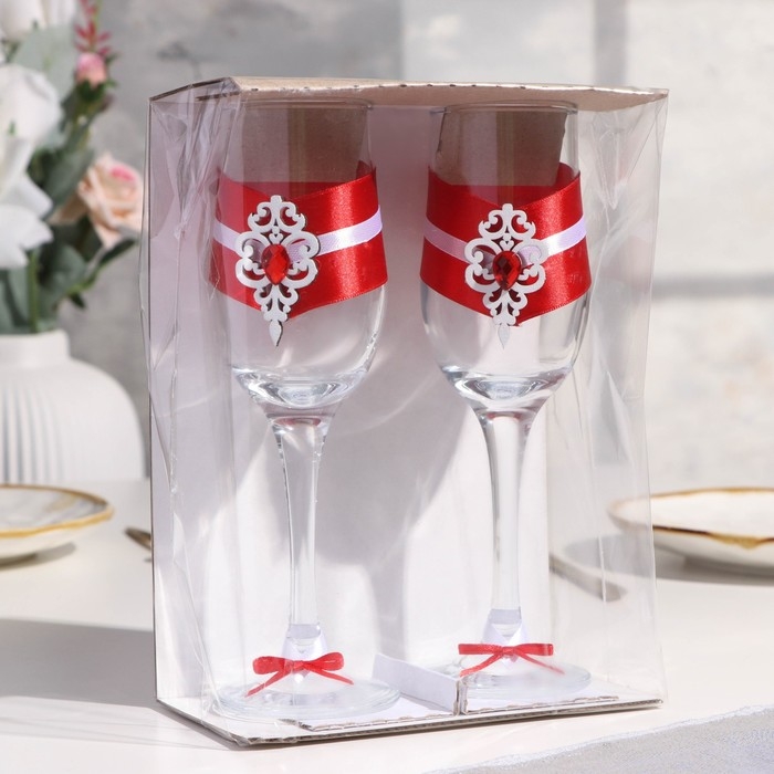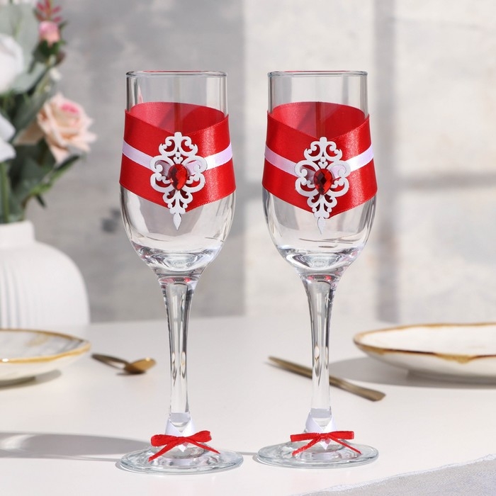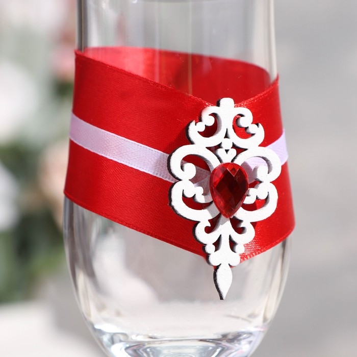 Набор свадебных бокалов "Прага", ручной работы, белый-красный, 6х6х20,5 см, 2 шт.