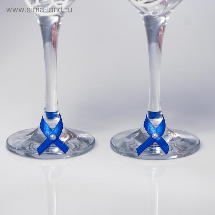 Набор свадебных бокалов "Романтика", ручной работы, синий-серебро, 6х6х20,5 см