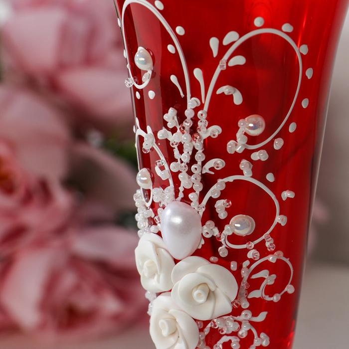 Набор свадебных бокалов "Розы", с лепниной и сердцем на ножке, красный