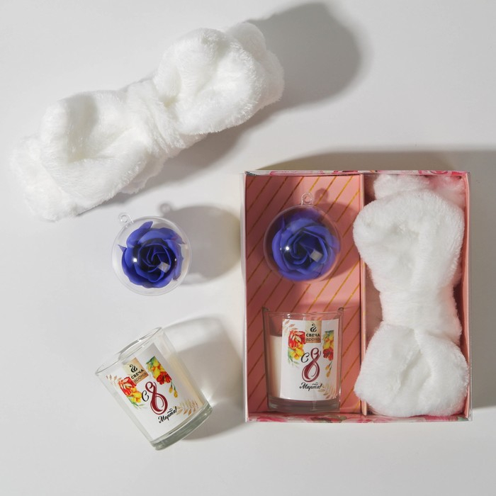 Набор: свеча, мыльные лепестки и повязка на голову «С 8 марта!», аромат ваниль