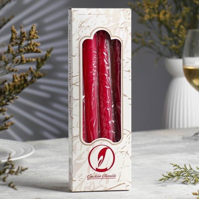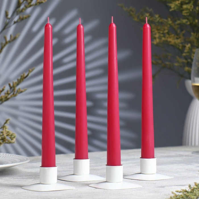 Набор свечей античных, 2,3х 24,5 см, 5 ч, 55 г, 4 штуки, малиновая