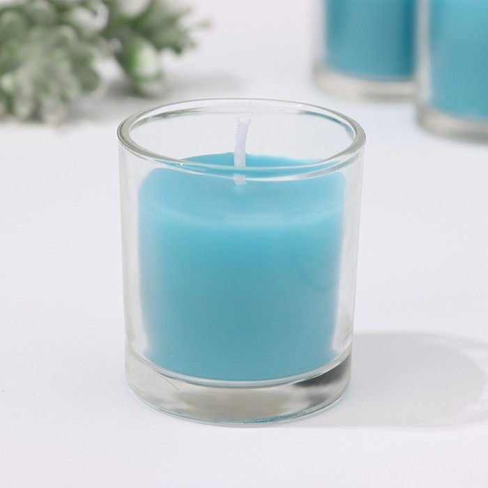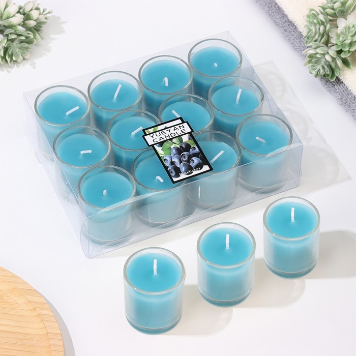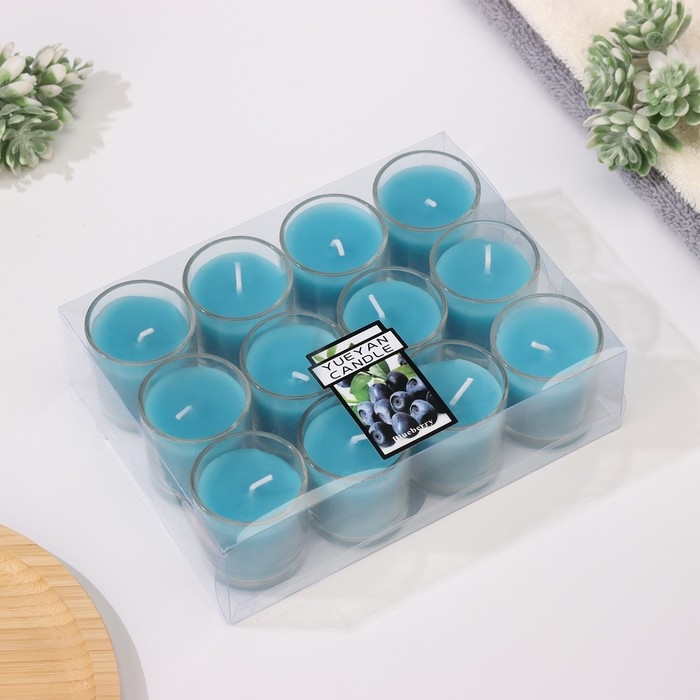 Набор свечей ароматических в стакане "Черника", 12 шт, голубые, 4,5х5 см