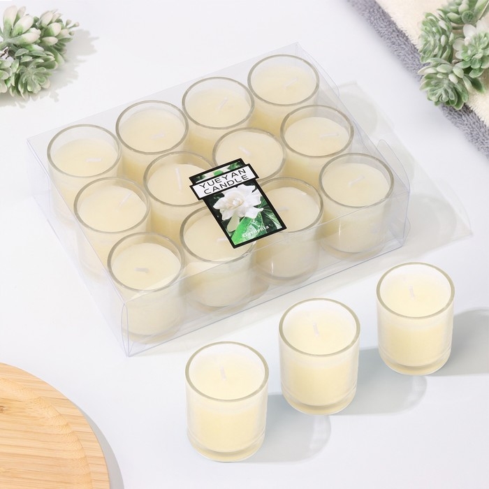Набор свечей ароматических в стакане "Гардения жасминовидная", 12 шт, 4,5х5 см