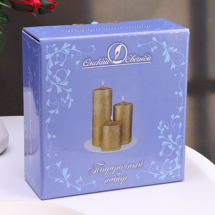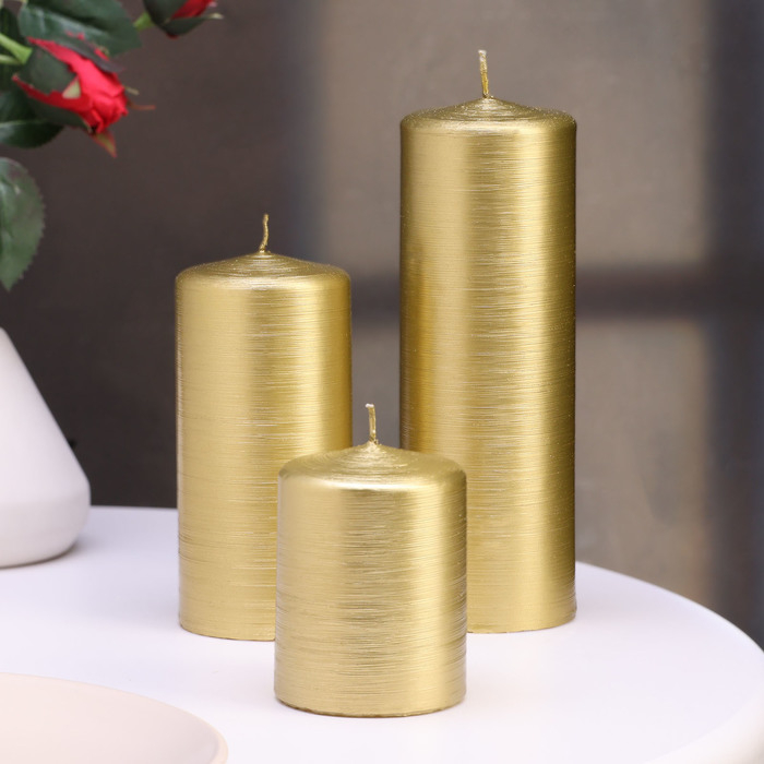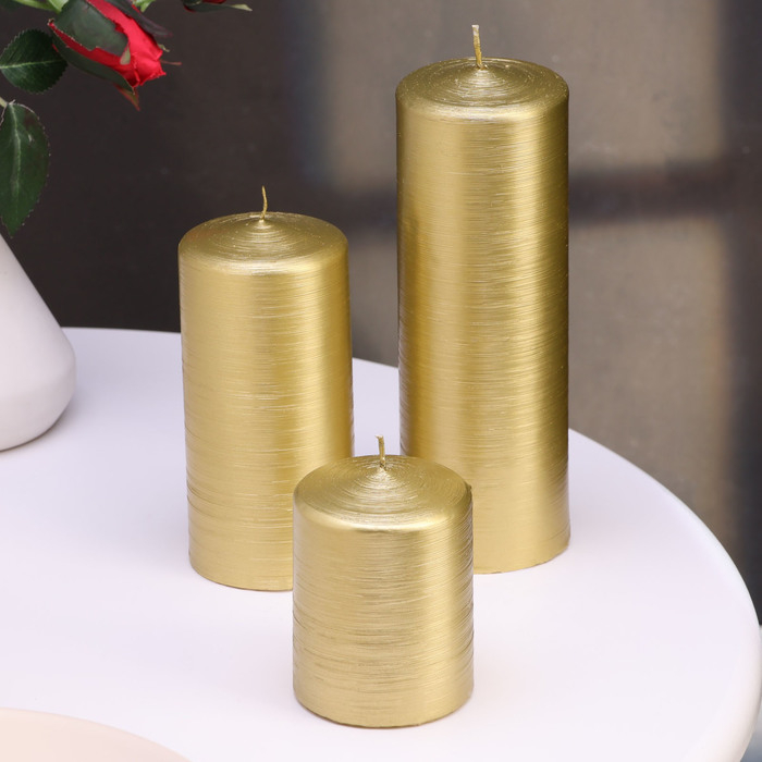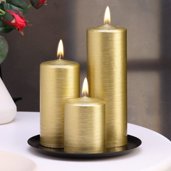 Набор свечей-цилиндров на подставке "Интерьерный", 3 шт, золотой