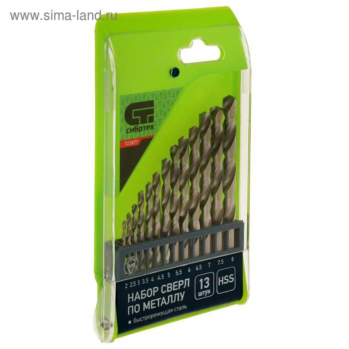 Набор сверл по металлу "СИБРТЕХ", 2 - 8 мм, HSS, цилиндрический хвостовик, 13 шт