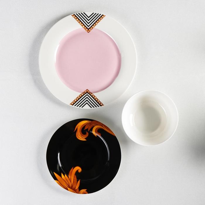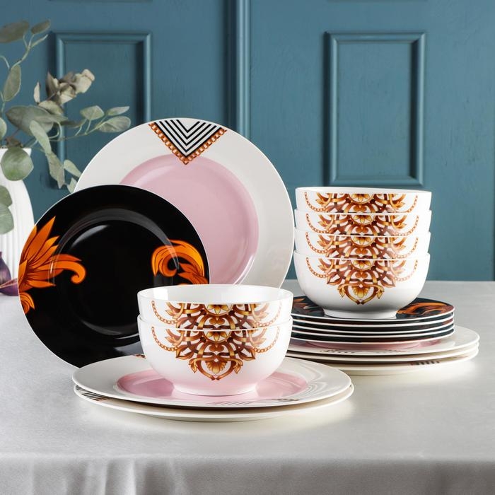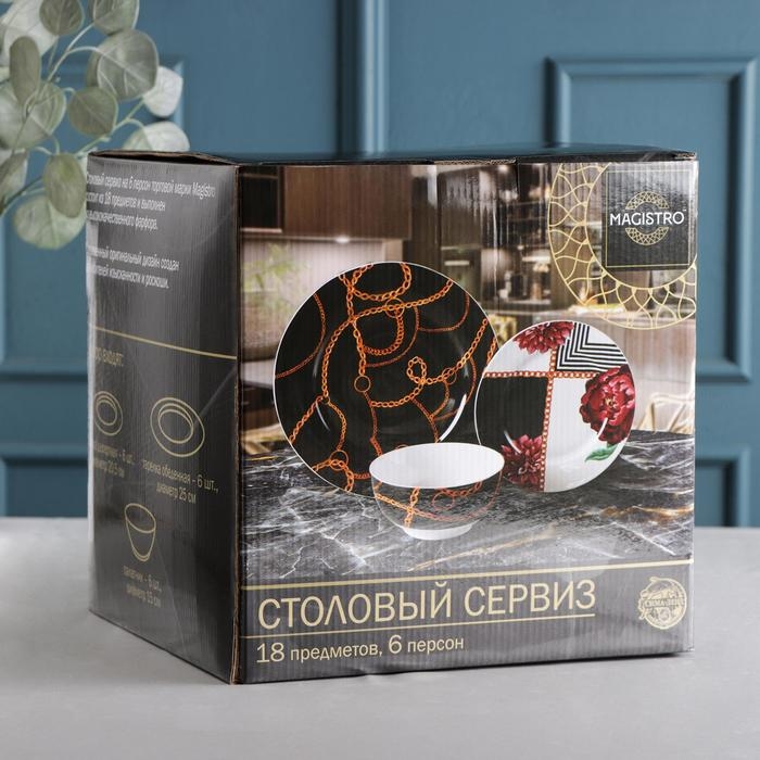 Набор тарелок фарфоровых Magistro «Миледи», 18 предметов: 6 тарелок d=20 см, 6 тарелок d=25 см, 6 салатников 800 мл