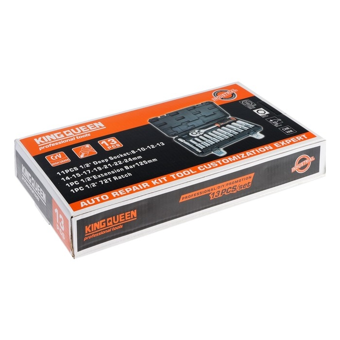 Набор торцевых головок с трещоткой KINGQUEEN WIB-40002, 72 зуба, 1/2", 13 предметов