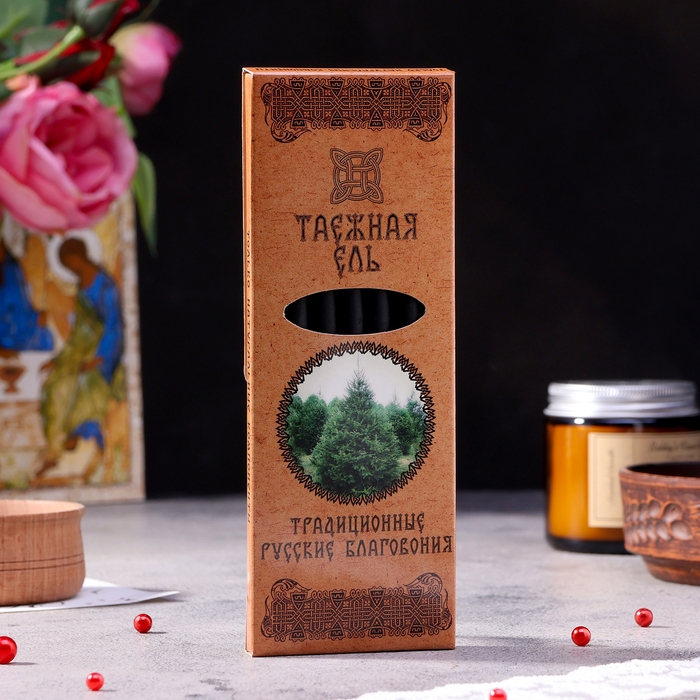 Набор традиционных русских благовоний "Таёжная ель", 7шт + подставка