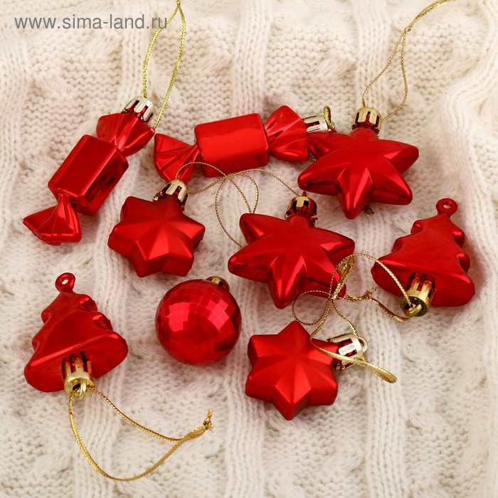 Набор украшений пластик 10 шт "Санда" красный