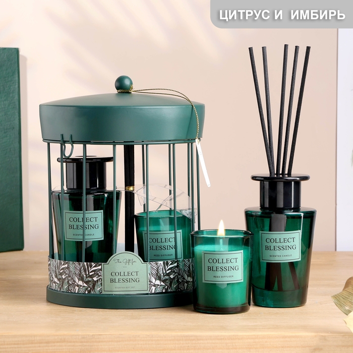 Набор в клетке "Ароматный дуэт" диффузор 100 мл и свеча 5х6 см, цитрус и имбирь