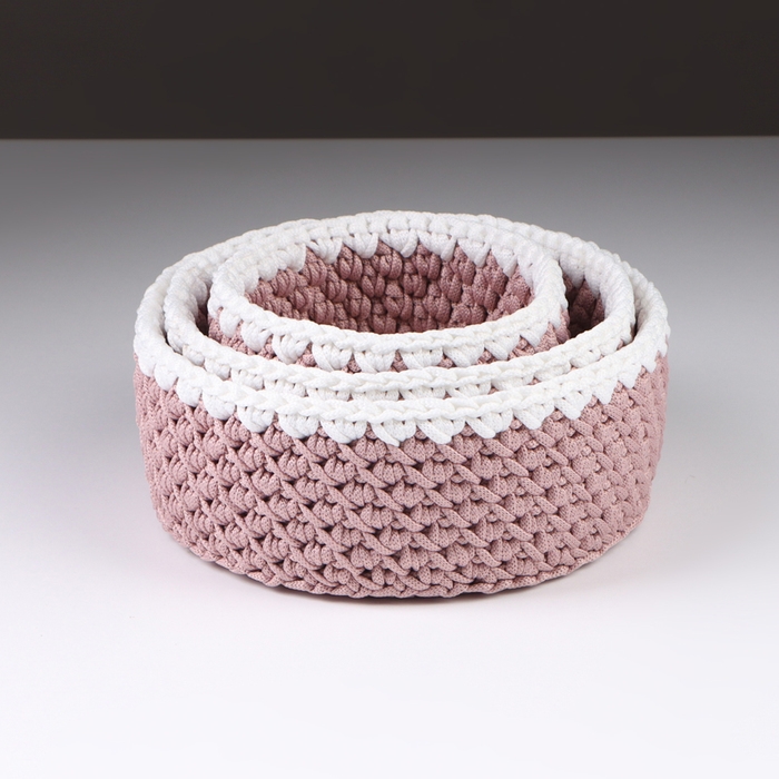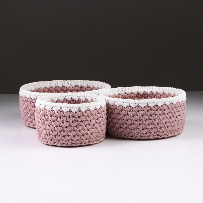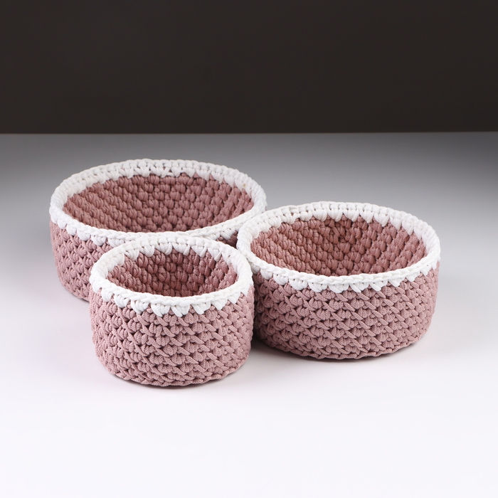 Набор вязанных корзин, 3 шт, полиэфирное волокно, сиреневый