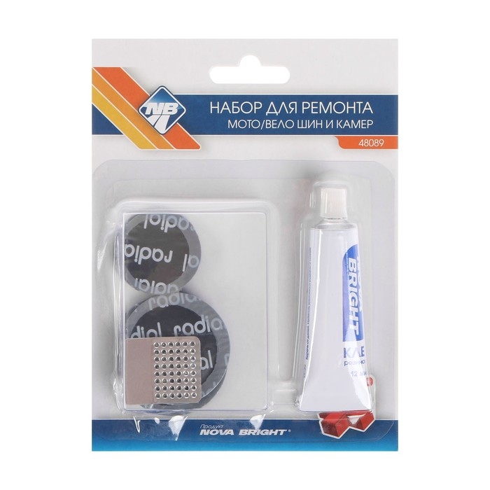 Набор заплаток для ремонта камер Nova Bright, 2 шт - 42 мм, 3 шт - 32 мм, клей, рашпиль